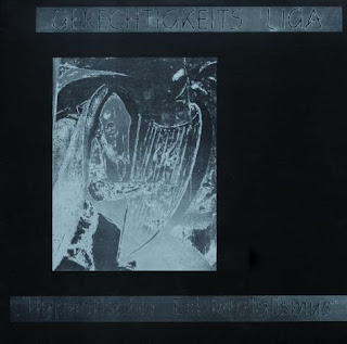 Yesterday I spent a lot of time listening to the clang 'n' clatter of industrial Germany - which is not to say I paid a visit to a factory in Berlin, although at times it sounded like it - a factory where albums were pressed onto sheet metal with a lathe - East German heavy machinery filtered through old synths and much metal-bashing by muscular men in oil-stained, sweat soaked dungarees with rolled up sleeves - what a glorious racket: Hypnotischer Existenzialismus - & I'm tempted to say that anyone who calls an album 'Hypnotic Existentialism' is alright by me, except that's not true, obviously, and what the goggled-eyed Left Bank philosophy guru JPS has to do with this noise I don't know - all I know is that it's a brilliant record, and has caused me to reconsider so-called Industrial Music to the point of actually investigating further, although I fear I'll find more that I don't like rather than do, but that's a prejudiced starting point, I know, because I ignored it all when it was fresh in the early-80s, being too busy listening to it's polar opposite, namely the Modern Jazz Quartet, although Milt Jackson's instrument, the vibraphone, did begin with bars made of steel, but to say that by striking them he made 'industrial music' would be absurd - as I 'speak', 'Volkermord Part 2' is ending with simply the bashing of something and a distant babbling/wailing voice; ending quite perfectly, I might say, after 7mins of mechano-tribalism - yes - much like 23 Skidoo, with whom Gerechtigkeits Liga shared the territory, even to the point of moving to London where they hooked up with Graeme Revell of SPK, apparently - but I've never heard anything by them - told you I was ignorant - but I am keen to be fashionable & IM circa 198 - is incredibly hip today, or was it yesterday? & if I made that up, I'm telling you it will be tomorrow & more importantly, only the good stuff, ie, not men shouting through megaphones or lame post-Electro Pop that gets passed off as 'hip', especially when it's made by Italians, or Ukrainians, but proper rusty proto-Techno like this, which Carl Craig and the crew were probably listening to whilst Detroit crumbled all around them - just a guess - & as drum machines rattle, samples babble, & synths groan to create voodoo ritualistic noise, I think: yes, this is what the future must have sounded like in the mid-80s, the messed up future of Terminators & tortured humans being ripped apart by grungy machines...
