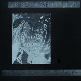 Hypnotischer Existenzialismus - & I'm tempted to say that anyone who calls an album 'Hypnotic Existentialism' is alright by me, except that's not true, obviously, and what the goggled-eyed Left Bank philosophy guru JPS has to do with this noise I don't know - all I know is that it's a brilliant record, and has caused me to reconsider so-called Industrial Music to the point of actually investigating further, although I fear I'll find more that I don't like rather than do, but that's a prejudiced starting point, I know, because I ignored it all when it was fresh in the early-80s, being too busy listening to it's polar opposite, namely the Modern Jazz Quartet, although Milt Jackson's instrument, the vibraphone, did begin with bars made of steel, but to say that by striking them he made 'industrial music' would be absurd - as I 'speak', 'Volkermord Part 2' is ending with simply the bashing of something and a distant babbling/wailing voice; ending quite perfectly, I might say, after 7mins of mechano-tribalism - yes - much like 23 Skidoo, with whom Gerechtigkeits Liga shared the territory, even to the point of moving to London where they hooked up with Graeme Revell of SPK, apparently - but I've never heard anything by them - told you I was ignorant - but I am keen to be fashionable & IM circa 198 - is incredibly hip today, or was it yesterday? & if I made that up, I'm telling you it will be tomorrow & more importantly, only the good stuff, ie, not men shouting through megaphones or lame post-Electro Pop that gets passed off as 'hip', especially when it's made by Italians, or Ukrainians, but proper rusty proto-Techno like this, which Carl Craig and the crew were probably listening to whilst Detroit crumbled all around them - just a guess - & as drum machines rattle, samples babble, & synths groan to create voodoo ritualistic noise, I think: yes, this is what the future must have sounded like in the mid-80s, the messed up future of Terminators & tortured humans being ripped apart by grungy machines...